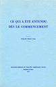 CE QUI A ÉTÉ ENTENDU DÈS LE COMMENCEMENT
