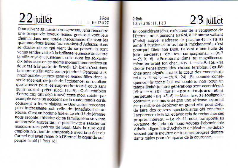 Ce petit guide a pour but d'accompagner la lecture quotidienne de la Bible seul ou en famille. En cinq ans vous serez amenés à lire toute la Bible.