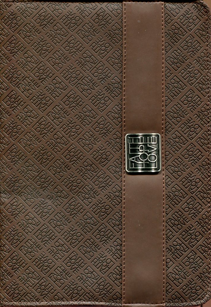 ÉTUI DE BIBLE BBL478, LARGE FAITH HOPE LOVE BRUNE SIMILI CUIR